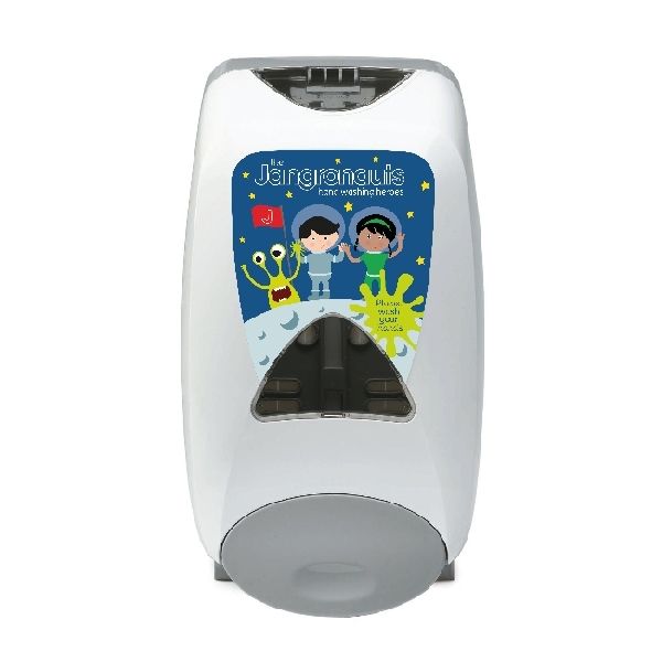 Attractive soap dispenser with a fun message, aimed at children to encourage hand washing. Robust construction. Easy-to-load refills. Features skylight with an extra-large sight window so it's easy to see when the refill needs replacing. One hand push operation. Dispenser is lockable to optimise security. With each refill the integrated system turns the liquid into foam.